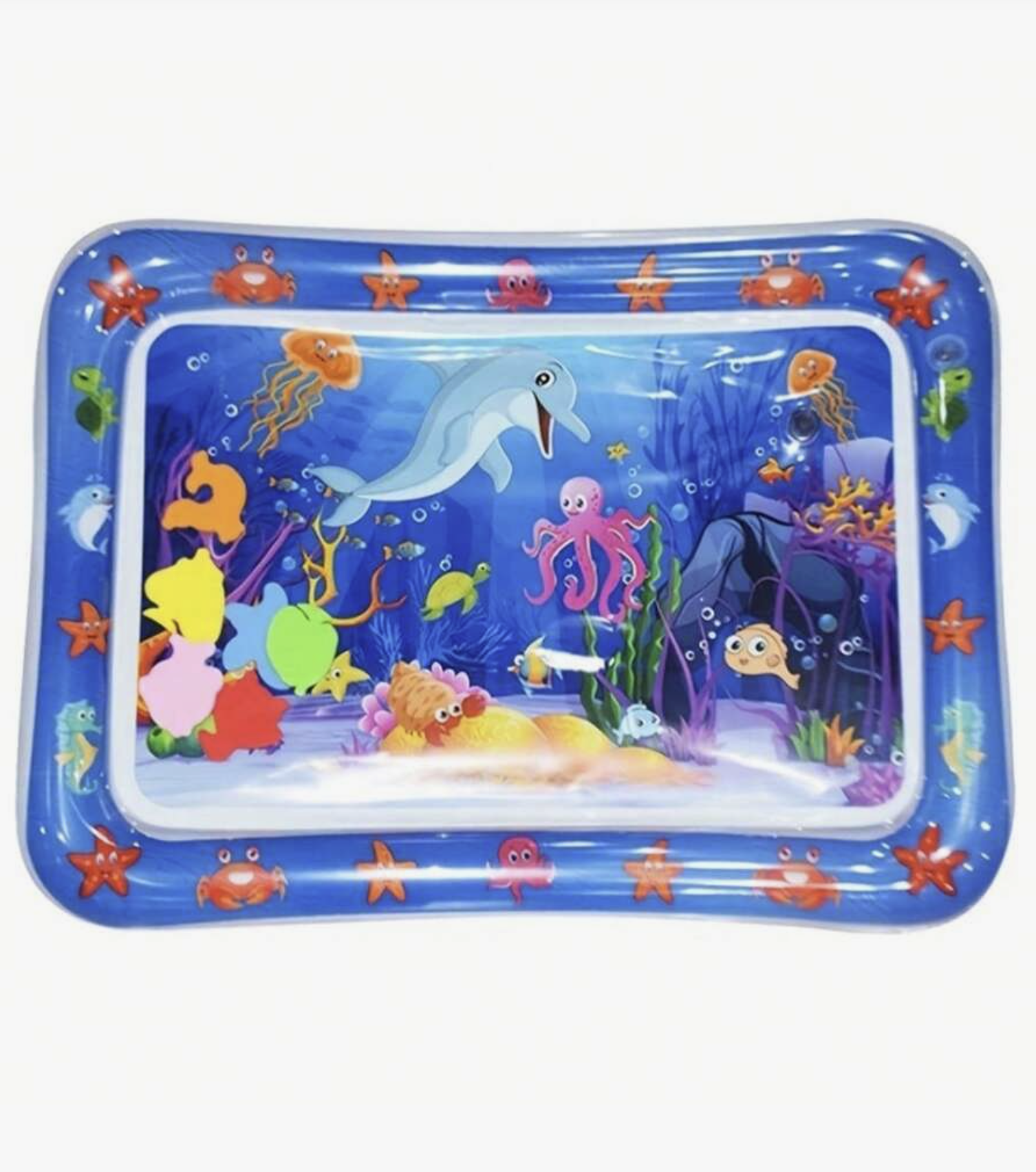 Make tummy time fun! This splash-free water mat has a bright under-the-sea design with floating toys that move as babies press and pat. It encourages motor skills, is easy to set up, and folds flat for travel.